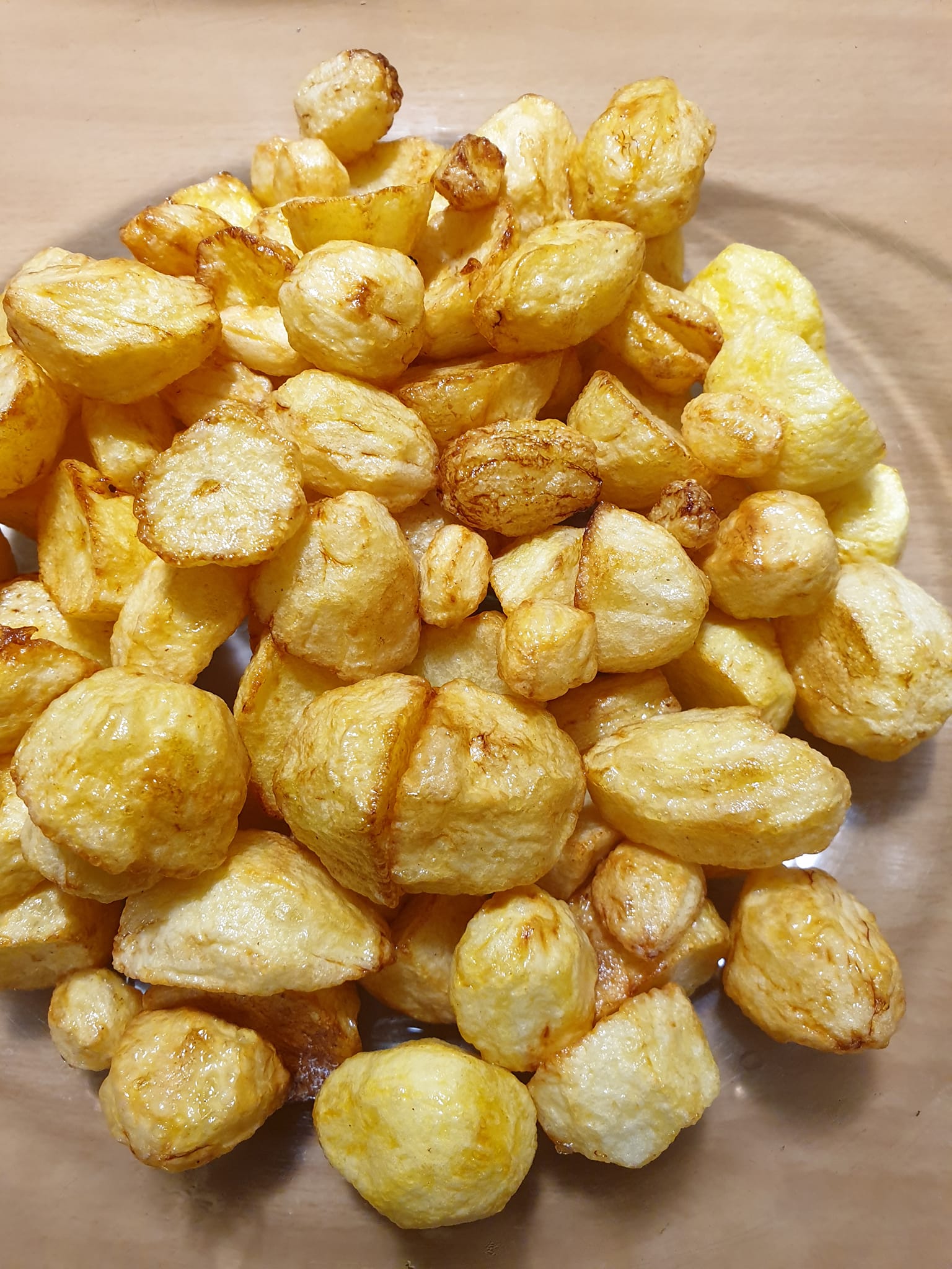 Καθάρισα και τηγάνισα μικρές φρέσκες πατάτες.