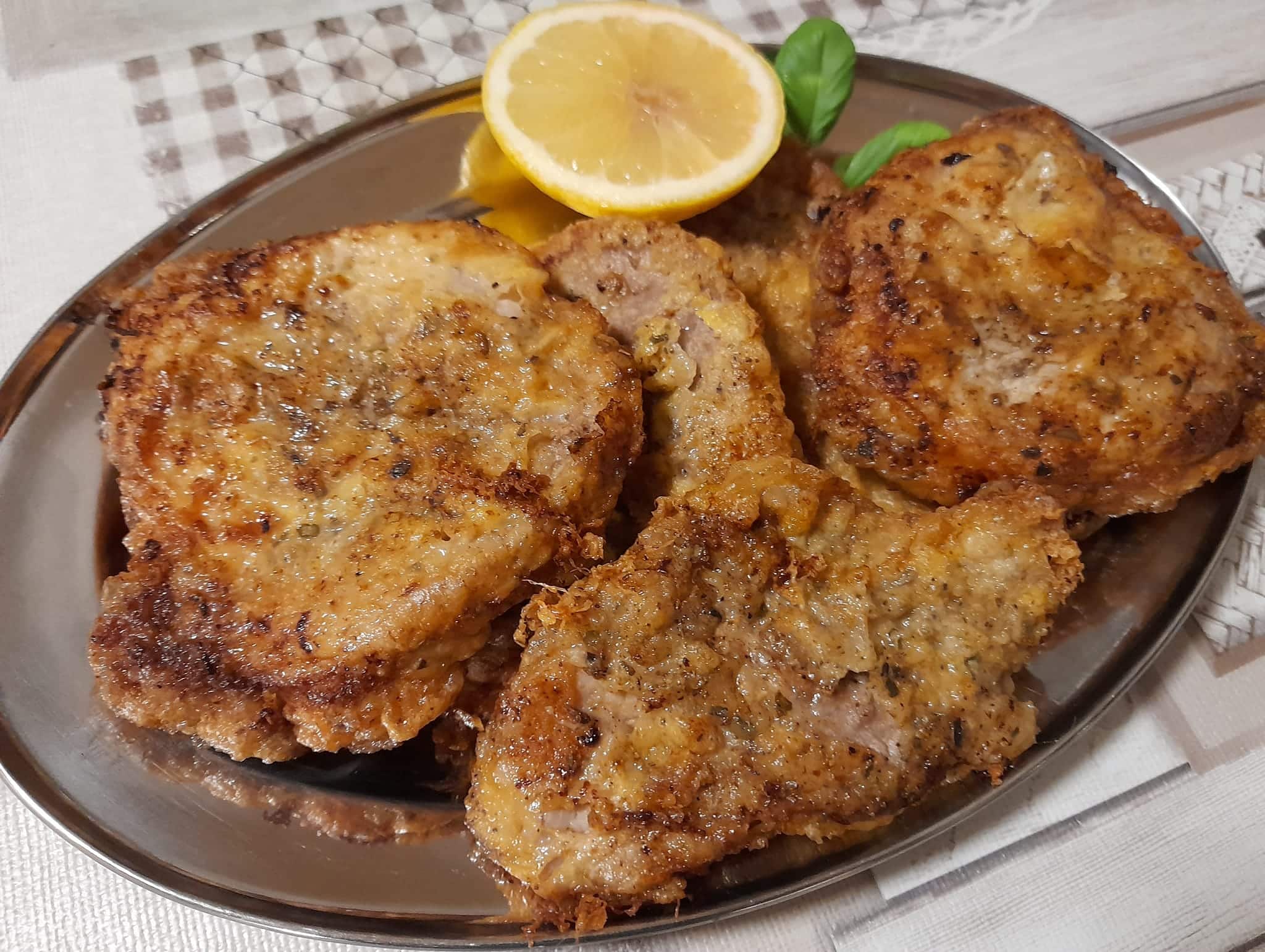 Το κρεας είναι σε ροδέλες πάχους 1½ εκ. περίπου και τα χτυπάτε για να λεπτύνουν και να πάρουν πάχος ½ εκ. περίπου.