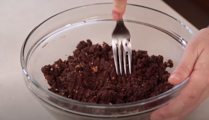 Προσθέτω το λάδι, ρούμι και το μέλι και ανακατεύω να πάρω ένα μείγμα σαν βρεγμένη άμμος.