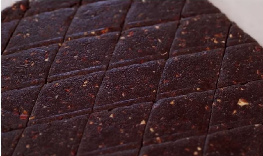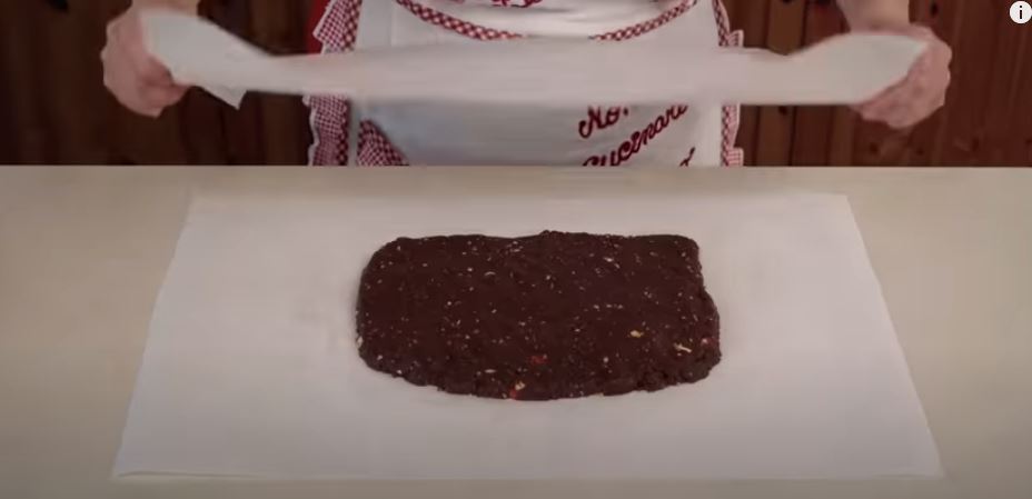 Αδειάζω το μείγμα πάνω σε μία λαδόκολα την διαμορφώνω σε ένα παραλληλόγραμο, την σκεπάζω