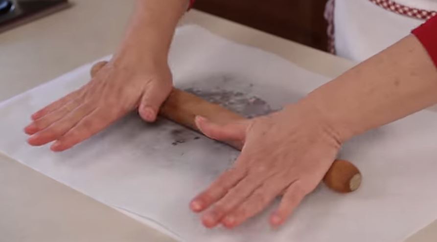 με χαρτί ψησίματος και με ένα πλάστη χοντρό την ανοίγουμε όπως στην φωτό.