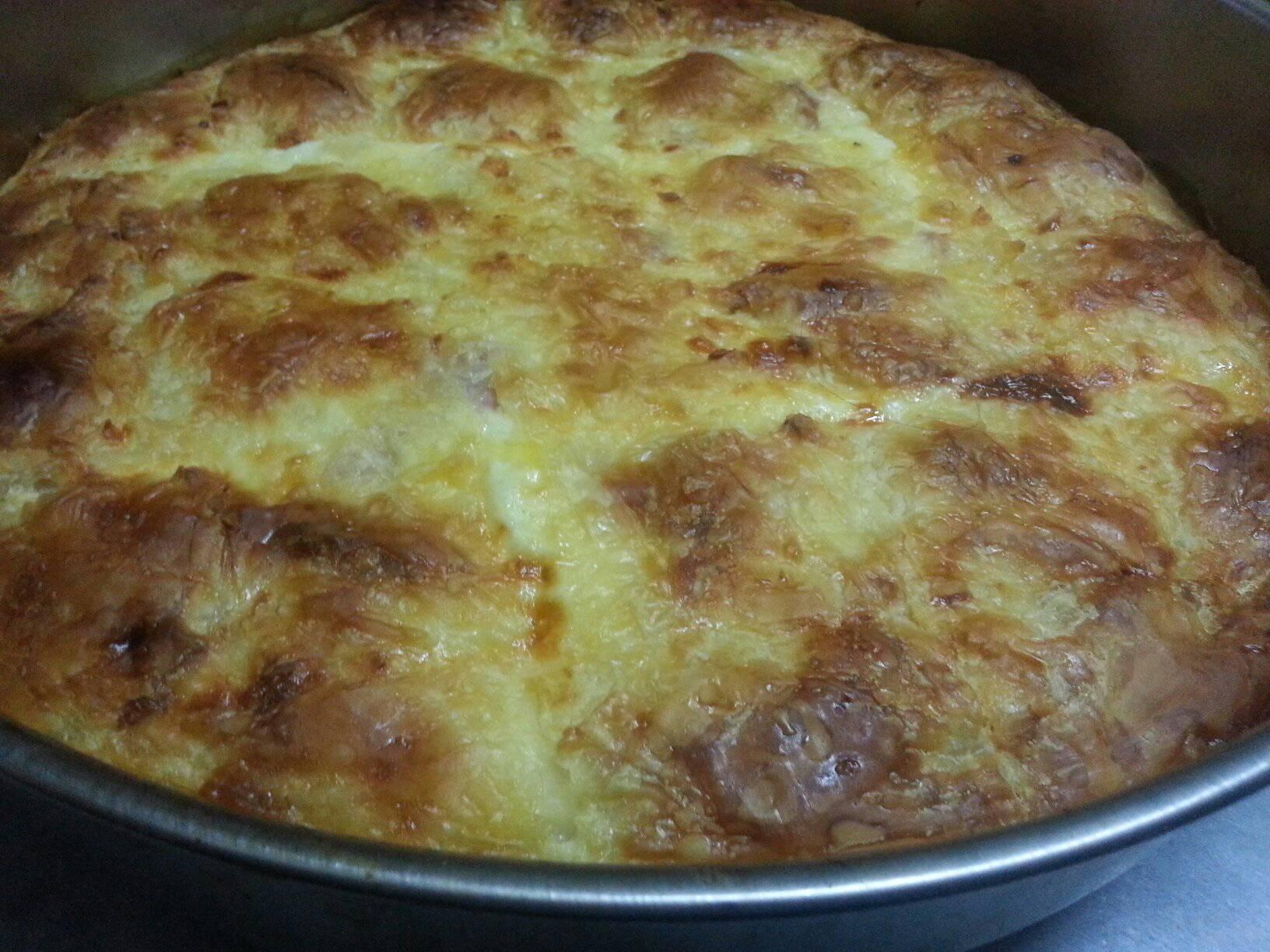 σύρμα χειρός. Χαράζουμε την πίτα και περιχυνουμε την ζαμπονοτυροπιτα.