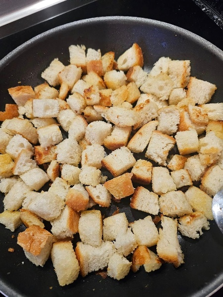 Σε ένα τηγάνι με καπάκι έλιωσα περίπου το βούτυρο και τηγάνισα το ψωμί.
