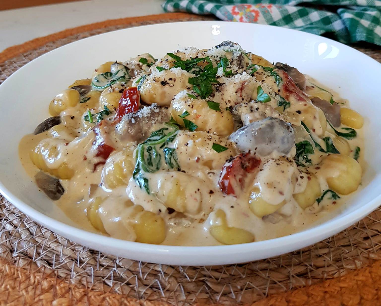 Ζυμαρικά με κρέμα μανιταριών και σπανάκι