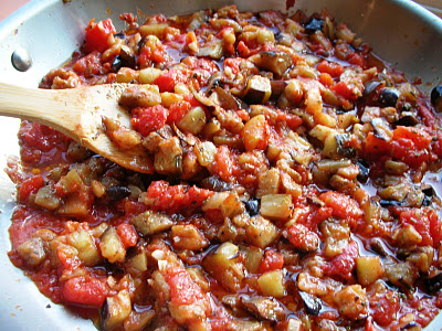 Ζυμαρικά με μελιτζάνα,σκόρδο και σάλτσα ντομάτας